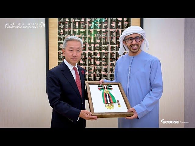 The decoration was presented by H.H. Sheikh Abdullah bin Zayed Al Nahyan, Deputy Prime Minister and Minister of Foreign Affairs, during a meeting with the ambassador in Abu Dhabi.