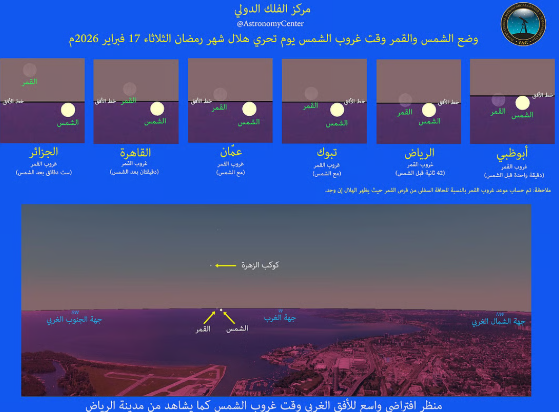 "Sighting the crescent on Tuesday (Feb 17) is either impossible or highly improbable from all regions of the Arab and Islamic world, whether with the naked eye, a telescope, or even using high-powered astronomical imaging technology,” said Engineer Muhammad Shawkat Odeh, Director of the Abu Dhabi-based International Astronomy Centre (IAC).