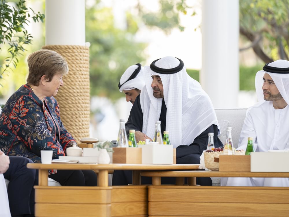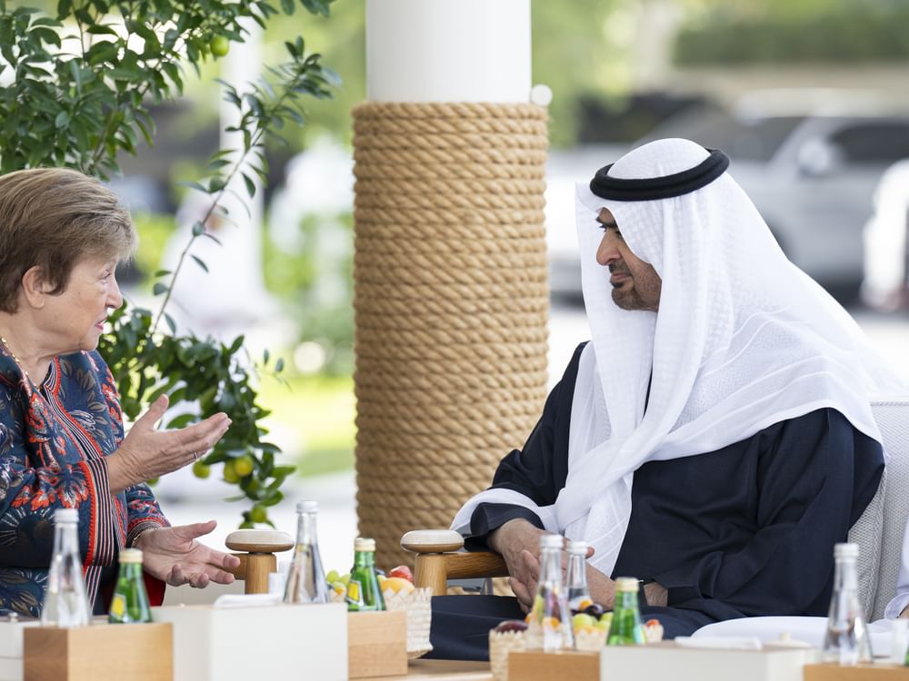 emirates7 - President His Highness Sheikh Mohamed bin Zayed Al Nahyan today met with Her Excellency Kristalina Georgieva, Managing Director of the International Monetary Fund (IMF), to discuss cooperation between the UAE and IMF and explore opportunities to strengthen ties in support of sustainable development and global economic growth.
