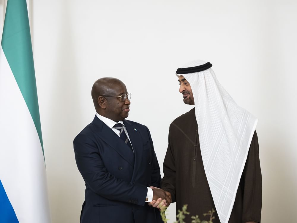 The UAE and Sierra Leonean Presidents affirmed their shared commitment to strengthening bilateral ties to advance the progress and prosperity of both nations and their peoples.
