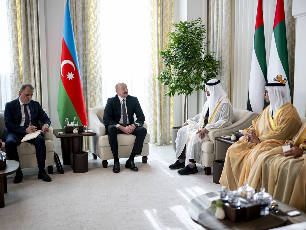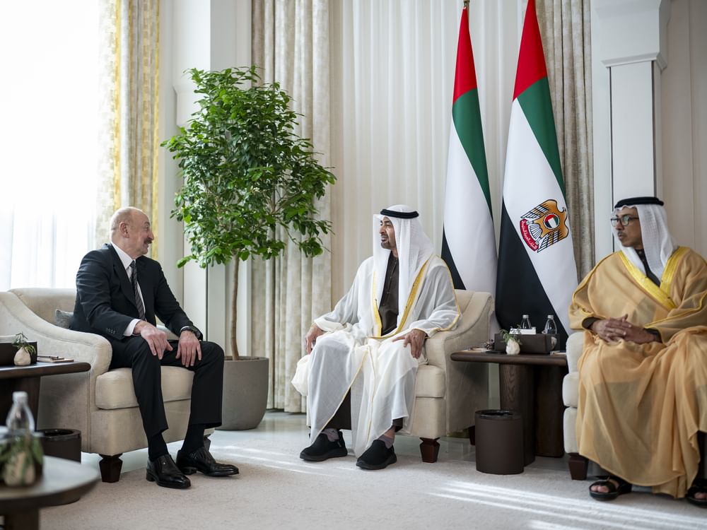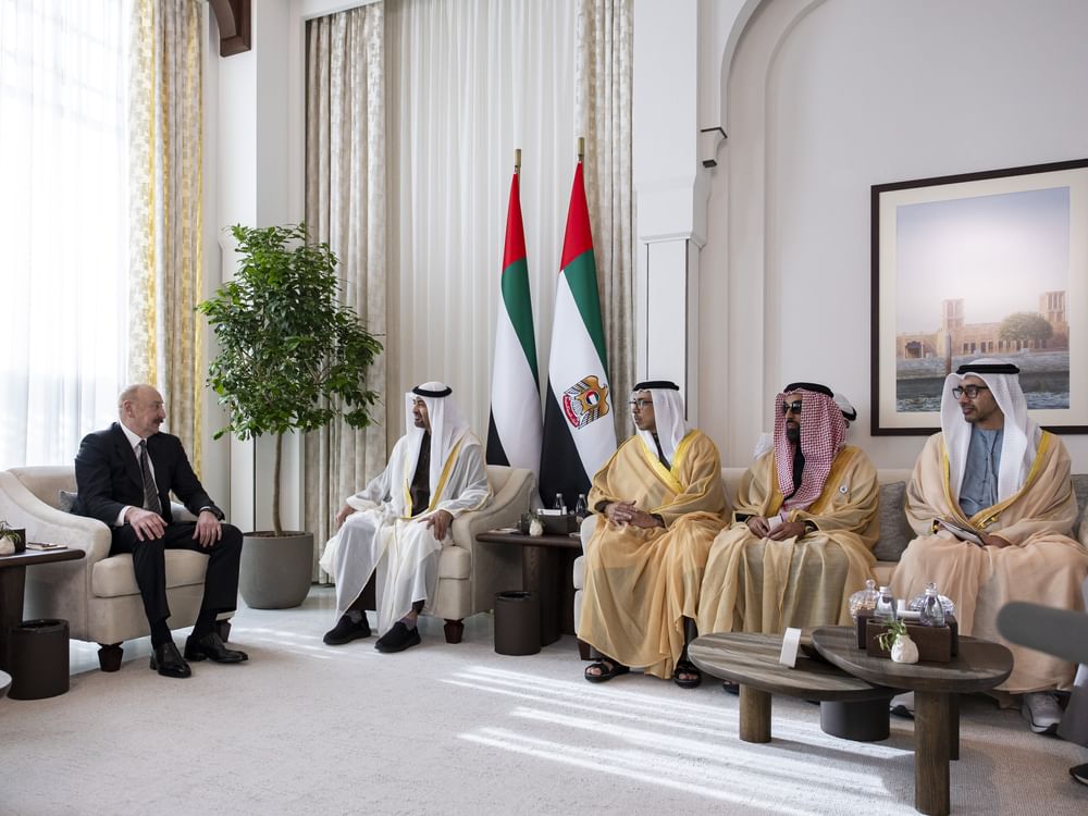President Aliyev arrived in the UAE earlier in the day and was welcomed by His Highness the President, along with His Highness Sheikh Mansour bin Zayed Al Nahyan, Vice President, Deputy Prime Minister, and Chairman of the Presidential Court, and a number of senior officials.