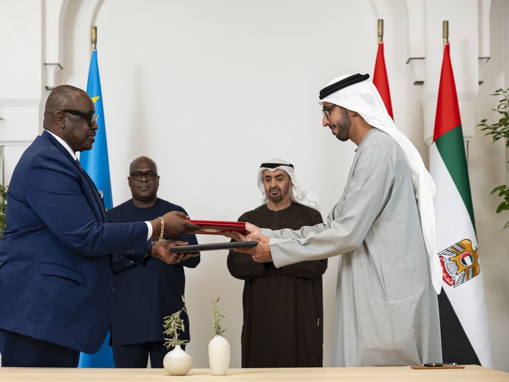 The MoUs were signed on behalf of the UAE by His Excellency Sheikh Shakhboot bin Nahyan Al Nahyan, Minister of State, and on behalf of the Democratic Republic of the Congo by His Excellency Louis Kabamba, Minister of Mines, and Her Excellency Noëlla Ayeganagato Nakwipone, Vice-Minister of Foreign Affairs. The two sides also announced cooperation in the field of maritime transport.