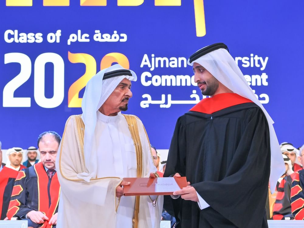 During the ceremony, H.H. Sheikh Humaid bin Rashid Al Nuaimi, accompanied by H.H. Sheikh Ammar bin Humaid Al Nuaimi, honoured the graduates.