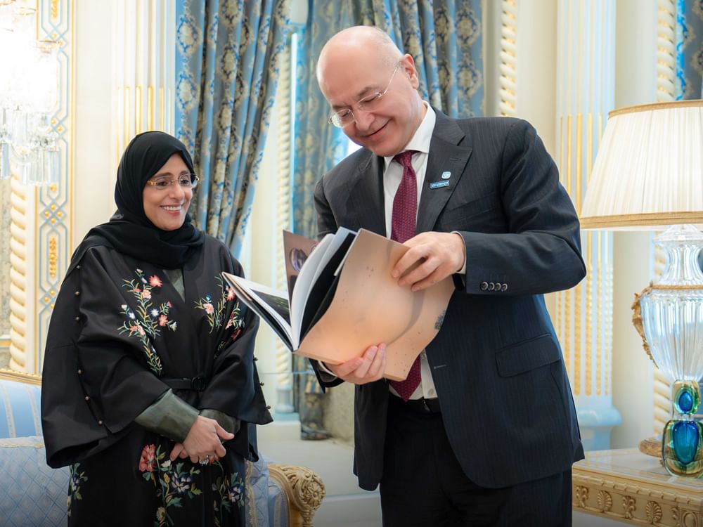 emirates7 - H.H. Sheikha Jawaher bint Mohammed Al Qasimi, Wife of the Ruler of Sharjah, Chairperson of the Sharjah Family and Community Council, and Eminent Advocate for Refugee Children at the United Nations High Commissioner for Refugees (UNHCR), received Dr. Barham Ahmed Salih, United Nations High Commissioner for Refugees, Office of the UNHCR, during his official visit to the emirate of Sharjah.