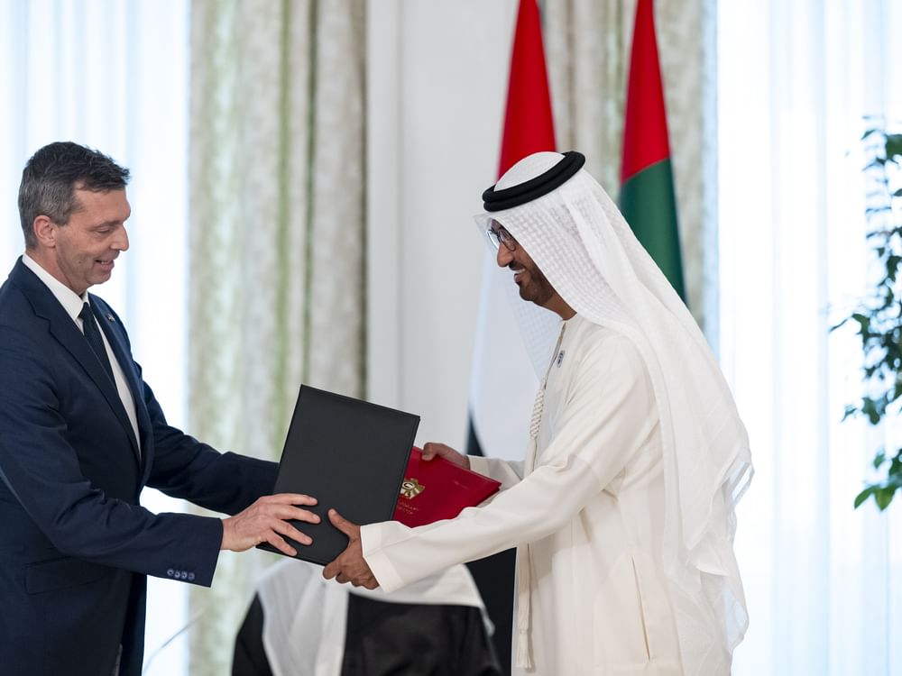 emirates7 - UAE President His Highness Sheikh Mohamed bin Zayed Al Nahyan met today with His Excellency Friedrich Merz, Chancellor of the Federal Republic of Germany, to explore ways to deepen bilateral cooperation in support of shared interests and development priorities.