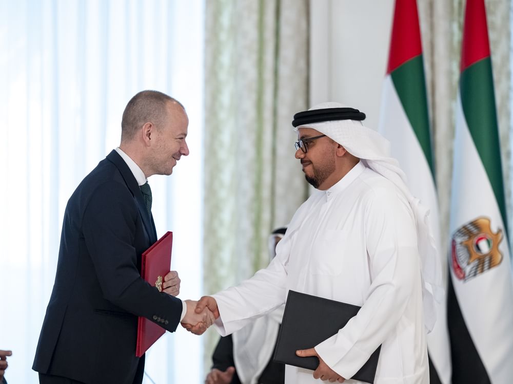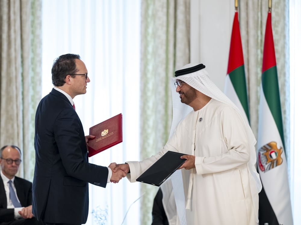 A Memorandum of Understanding between ADNOC and RWE on cooperation across the gas and liquefied natural gas value chain. The MoU was exchanged by His Excellency Dr Sultan Ahmed Al Jaber, Minister of Industry and Advanced Technology and Managing Director and Group Chief Executive Officer of ADNOC, and Dr Markus Krebber, Chief Executive Officer of RWE.