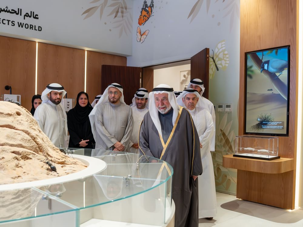 He toured the Insect Hall, which houses a collection of rare butterflies gifted by His Highness to the museum, along with preserved insect specimens. The hall is supported by a digital application that provides scientific information on classification, geographic distribution, and levels of toxicity. It also includes a virtual reality experience introducing the camel spider and its life cycle.