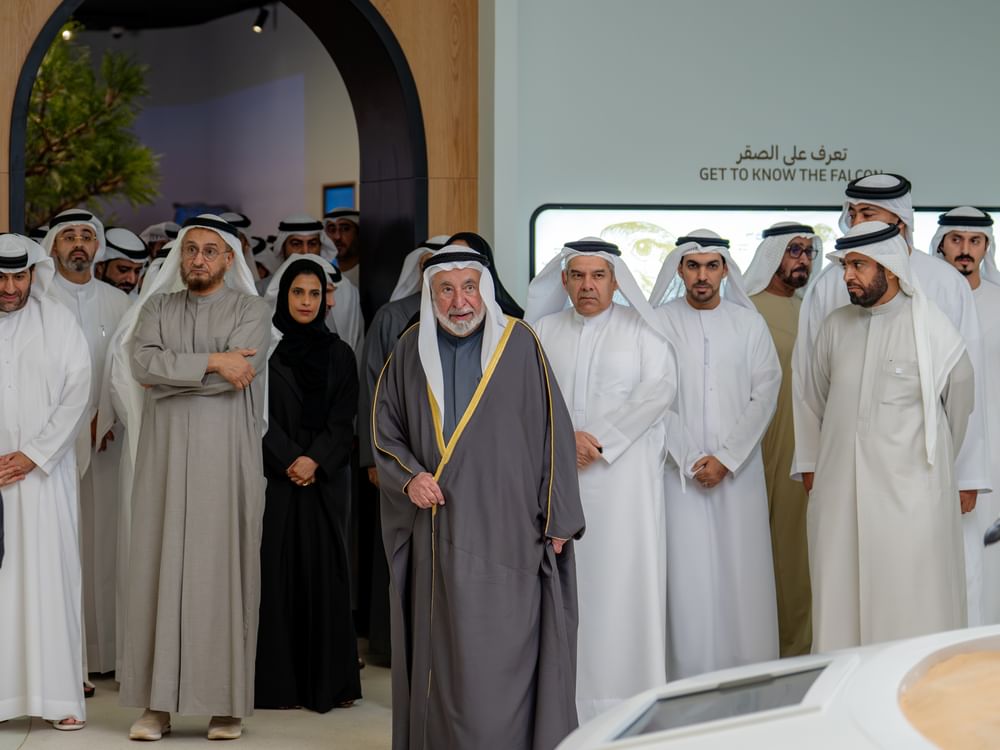 In the Bird Hall, the Ruler of Sharjah learned about the types of resident and migratory birds in the desert environment, including falcons and eagles, which hold a special place in the heritage of the United Arab Emirates. This is presented through displays on interactive screens that provide extensive specialised information explaining behavioural differences, hunting methods, and dietary systems, in addition to showcasing nests and how to distinguish between them.