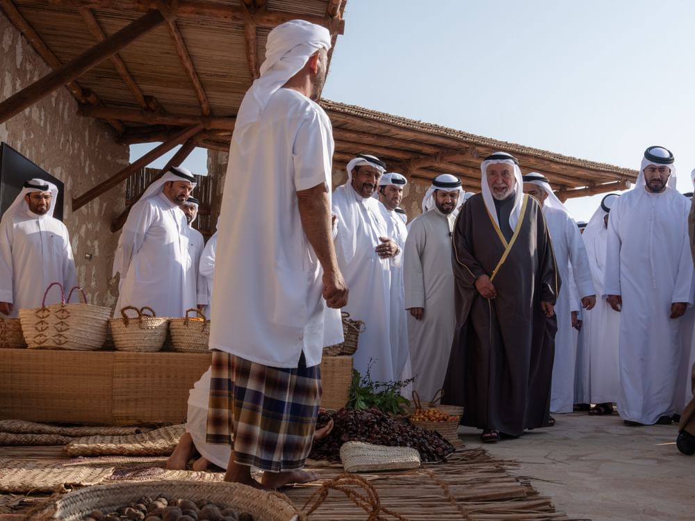 H.H. viewed a collection of photographs depicting the tower's restoration and the work undertaken. He also observed a display of traditional agricultural crafts and practices, which contribute to preserving and transmitting cultural heritage to future generations. These displays highlight how all agricultural and palm products were utilised in the past, particularly date palms, which were a source of food security in the past.