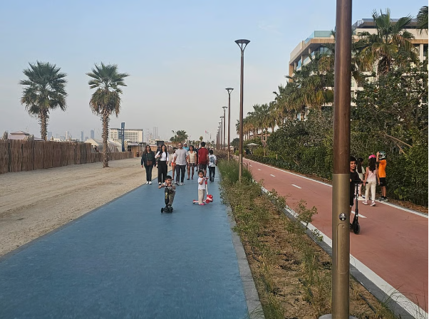 When Khaleej Times visited the beach, a few swimmers had entered the water, children rode their bicycles, some pushed two-wheel scooters forward with one foot. Teenagers skated along the track and parents walked with strollers. It was calm and not crowded.