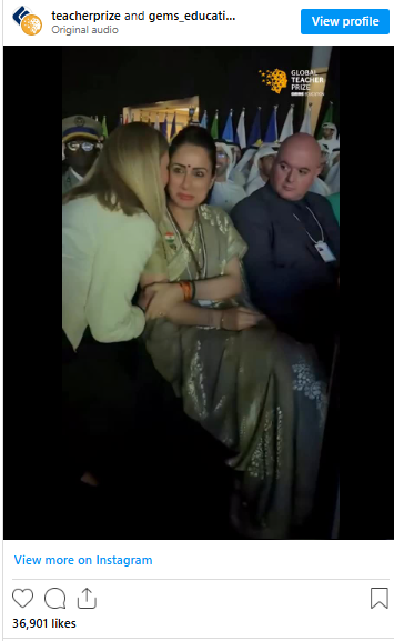 In her emotional acceptance speech, she said "it has been my dream to see every child in India in school. This award is a recognition for the constant, consistent effort for the last 24 years, getting up in the morning and going to class in the remotest possible areas of India, into the slums and teaching children and learning back from them"
