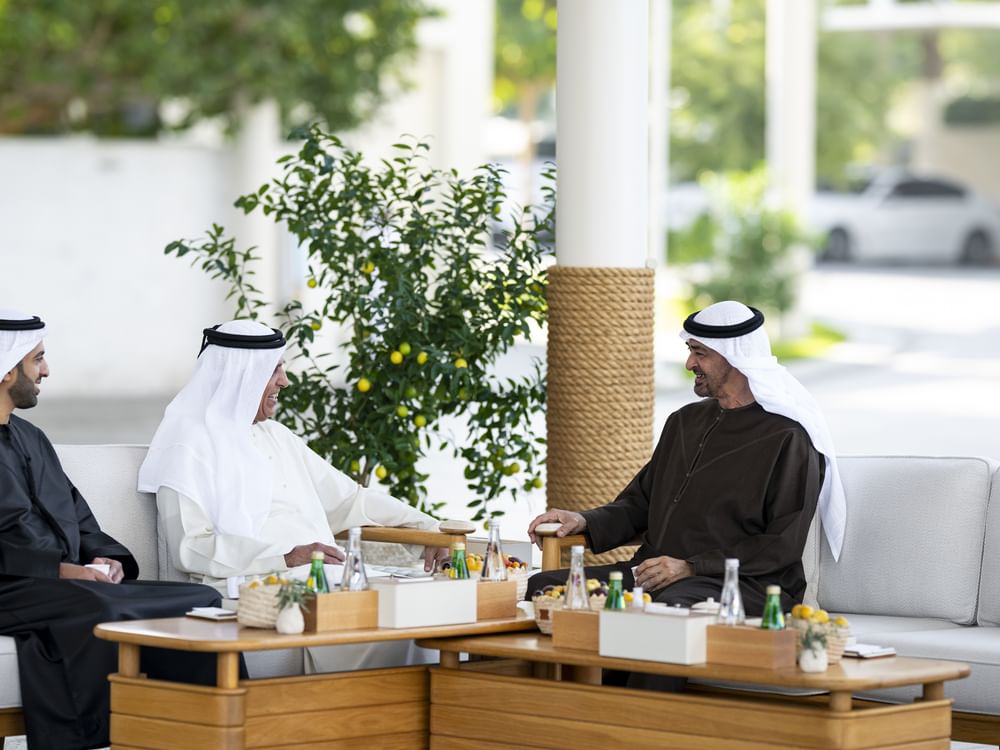 The meeting was attended by H.H. Sheikh Hamed bin Zayed Al Nahyan; H.H. Sheikh Khalid bin Zayed Al Nahyan, Chairman of the Board of Trustees of the Zayed Authority for People of Determination; H.H. Sheikh Theyab bin Mohamed bin Zayed Al Nahyan, Deputy Chairman of the Presidential Court for Development and Fallen Heroes' Affairs; H.H. Sheikh Hamdan bin Mohamed bin Zayed Al Nahyan, Deputy Chairman of the Presidential Court for Special Affairs; Sheikh Mohammed bin Hamad bin Tahnoun Al Nahyan, Adviser to the UAE President; and a number of sheikhs and senior officials.