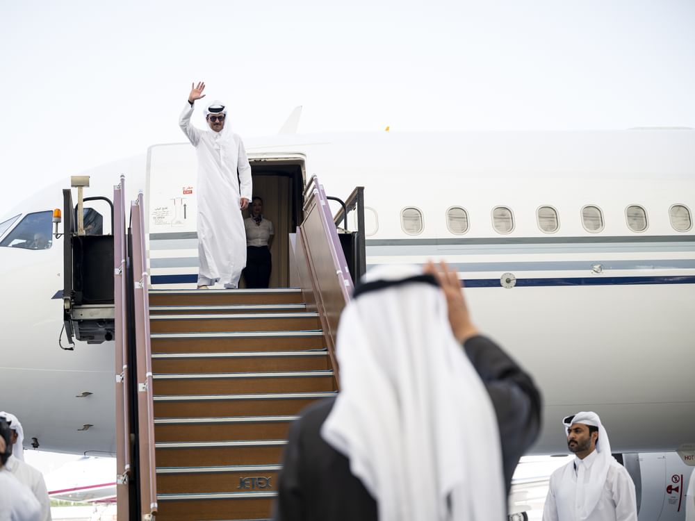 His Highness Sheikh Tamim bin Hamad Al Thani departed the UAE later in the day, with UAE President His Highness Sheikh Mohamed bin Zayed Al Nahyan bidding him farewell alongside a number of sheikhs, ministers and senior officials.