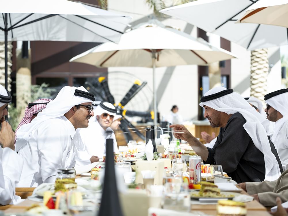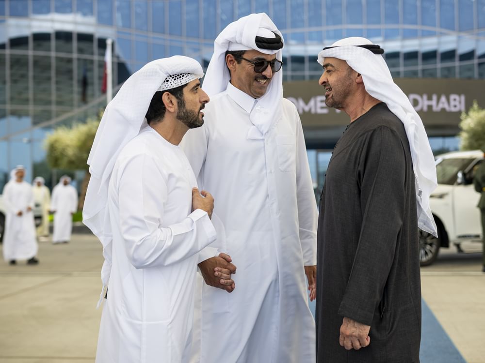 His Highness Sheikh Mohamed bin Zayed and His Highness Sheikh Tamim bin Hamad also exchanged views on a number of regional and international issues of mutual concern, including developments in the Middle East and efforts to support stability and peace through dialogue and diplomatic solutions.
