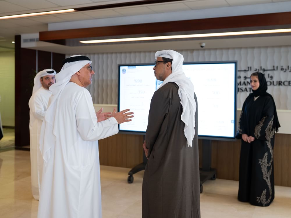 H.H. Sheikh Mansour praised the efforts of the Ministry of Human Resources and Emiratisation in developing qualitative policies and initiatives. He also lauded the integration between government entities and the private sector, noting that this synergy enhances the competitiveness of the labour market and establishes an advanced national model for managing development and achieving its strategic objectives.