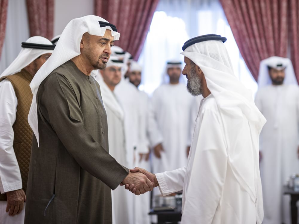 emirates7 - President His Highness Sheikh Mohamed bin Zayed Al Nahyan today offered his condolences on the passing of the mother of Awadh Saeed bin Musleh Al Ahbabi, during a visit to the condolence majlis in Al Ain.