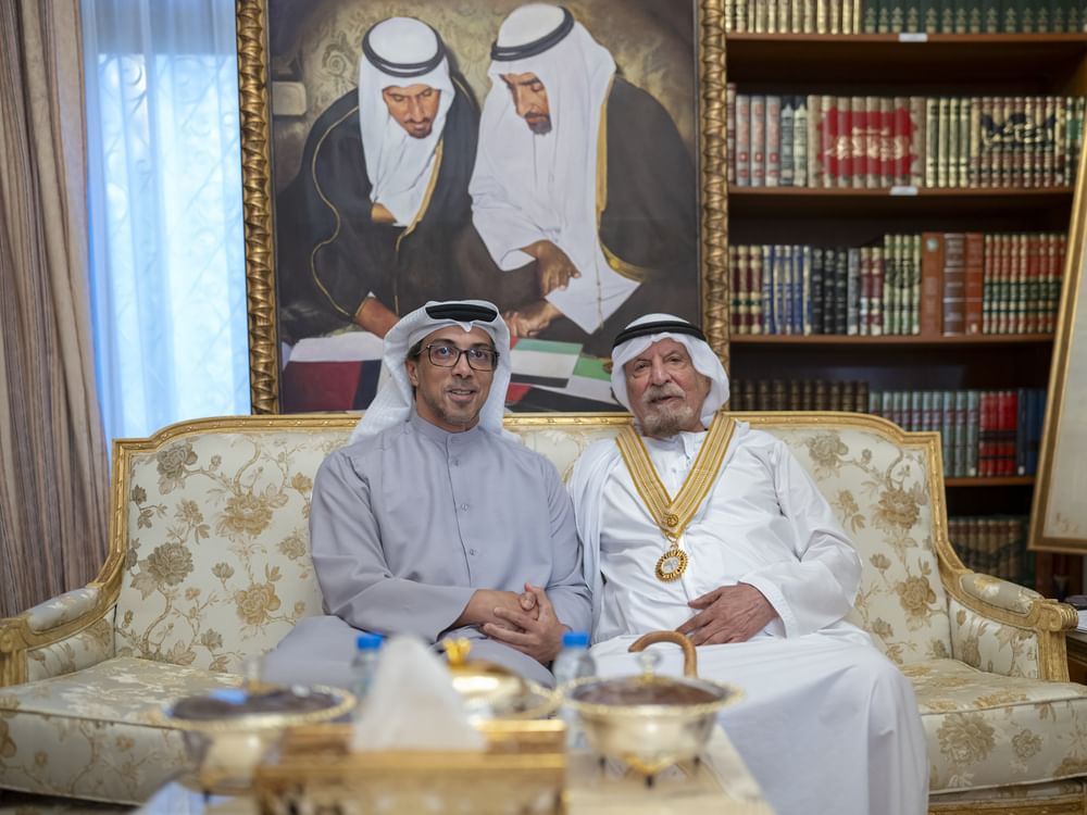 emirates7 - His Highness Sheikh Mansour bin Zayed Al Nahyan, Vice President, Deputy Prime Minister and Chairman of the Presidential Court, honoured Ahmed Khalifa Al Suwaidi, UAE President’s Representative, at his home in Al Ain, in recognition of his distinguished national and cultural contributions.