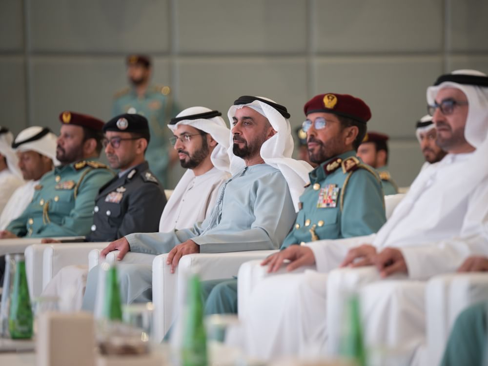 In attendance were Dr. Omar Habtoor Al Derei, Chairman of the General Authority for Islamic Affairs, Endowments and Zakat; Major General Khalifa Hareb Al Khaili, Undersecretary of the Ministry of Interior; Omar Obaid Al Hosan Al Shamsi, Undersecretary of the Ministry of Foreign Affairs; Ghanem Mubarak Al Hajeri, Undersecretary of the Ministry of Sports; Major General Salem Al Shamsi, Assistant Undersecretary for Resources and Support Services at the Ministry of Interior; Major General Sheikh Mohammed bin Tahnoun Al Nahyan, Director General of Abu Dhabi Police; Engineer Fahad Al Hammadi, Assistant Undersecretary for Support Services at the Ministry of Energy and Infrastructure; Engineer Sharif Salim Al Olama, Undersecretary of the Ministry of Energy and Infrastructure; Major General Jassim Mohammed Al Marzouqi, Commander-in-Chief of Civil Defense; Major General Abdulaziz Maktoum Al Sharifi, Director General of Preventive Security at the Ministry of Interior; Brigadier Saeed Abdullah Al Suwaidi, Assistant Undersecretary for Security Affairs at the Ministry of Interior; Dr. Mohammed Al Kuwaity, Chairman of the UAE Government Cybersecurity Council; Khalid Ateeq Al Dhaheri, CEO of the National Insurance Company - Daman; Aisha Ibrahim Al Marzouqi, Executive Director of Government Services at Abu Dhabi Digital Authority; Abeer Tahlak, Director of the Mohammed bin Rashid Centre for Government Innovation; Obaid Hussain Bukasha, Chief Operating Officer at Etisalat Group; and Amira Al Falasi of Emirates Airline, along with a number of officers, officials, and families of the graduates.