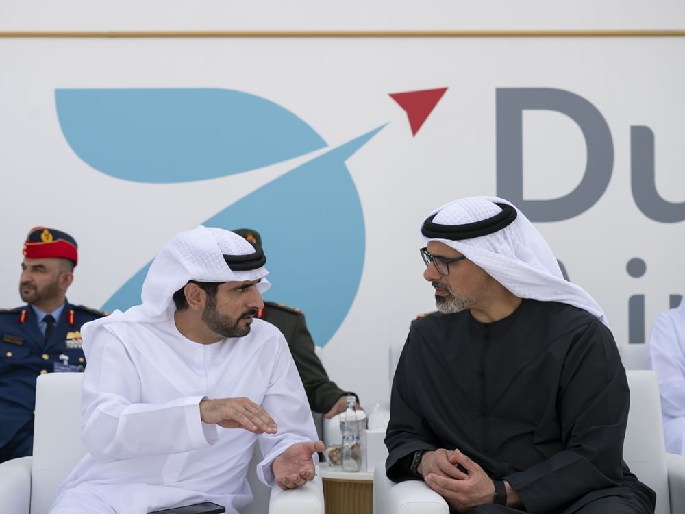 emirates7 - H.H. Sheikh Khaled bin Mohamed bin Zayed Al Nahyan, Crown Prince of Abu Dhabi and Chairman of the Abu Dhabi Executive Council, and H.H. Sheikh Hamdan bin Mohammed bin Rashid Al Maktoum, Crown Prince of Dubai, Deputy Prime Minister and Minister of Defence of the UAE, attended the aerial display organised on the sidelines of the 19th edition of the Dubai Airshow.