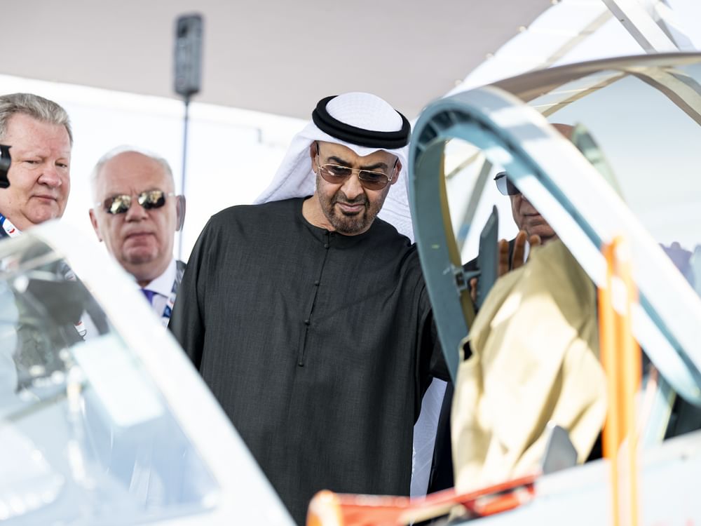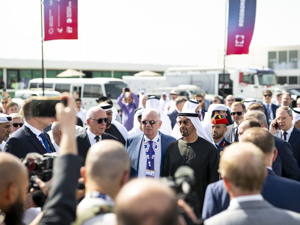 H.H. Sheikh Mohamed bin Zayed engaged in discussions with representatives of participating companies and entities, who briefed him on their contributions to the exhibition and the technologies being showcased, including next-generation civil and military aircraft, and integrated air defence systems.