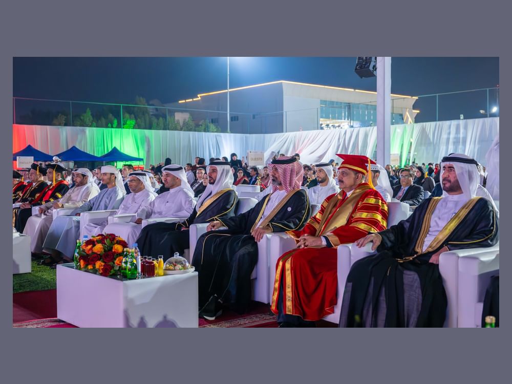 emirates7 - In the presence of H.H. Sheikh Ammar bin Humaid Al Nuaimi, Crown Prince of Ajman and Chairman of the Ajman Executive Council, Gulf Medical University (GMU), Ajman, celebrated the graduation of 630 students across its various colleges at the Convocation 2025 ceremony held at Thumbay Grounds, Thumbay Medicity.