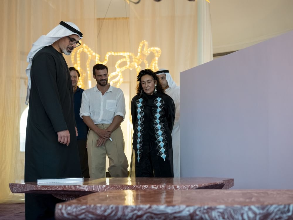 During the visit, he was accompanied by Mohamed Khalifa Al Mubarak, Chairman of the Department of Culture and Tourism – Abu Dhabi; Saif Saeed Ghobash, Secretary-General of the Abu Dhabi Executive Council and Chairman of the Office of the Crown Prince; and Saood Abdulaziz Al Hosani, Undersecretary of the Department of Culture and Tourism – Abu Dhabi.