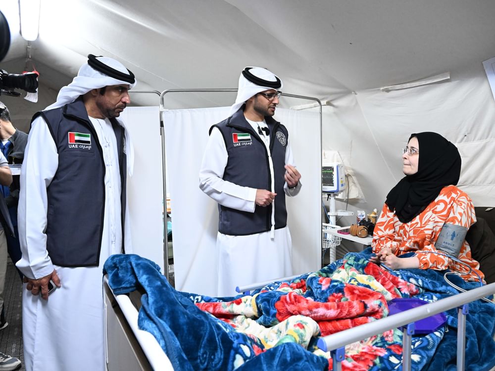 He also visited the UAE Floating Hospital and was briefed on the medical and surgical services it provides to Palestinian patients, praising the efforts of the medical and technical teams and supporting personnel taking part in the operation.