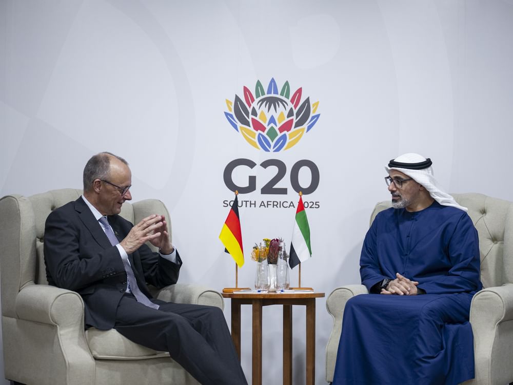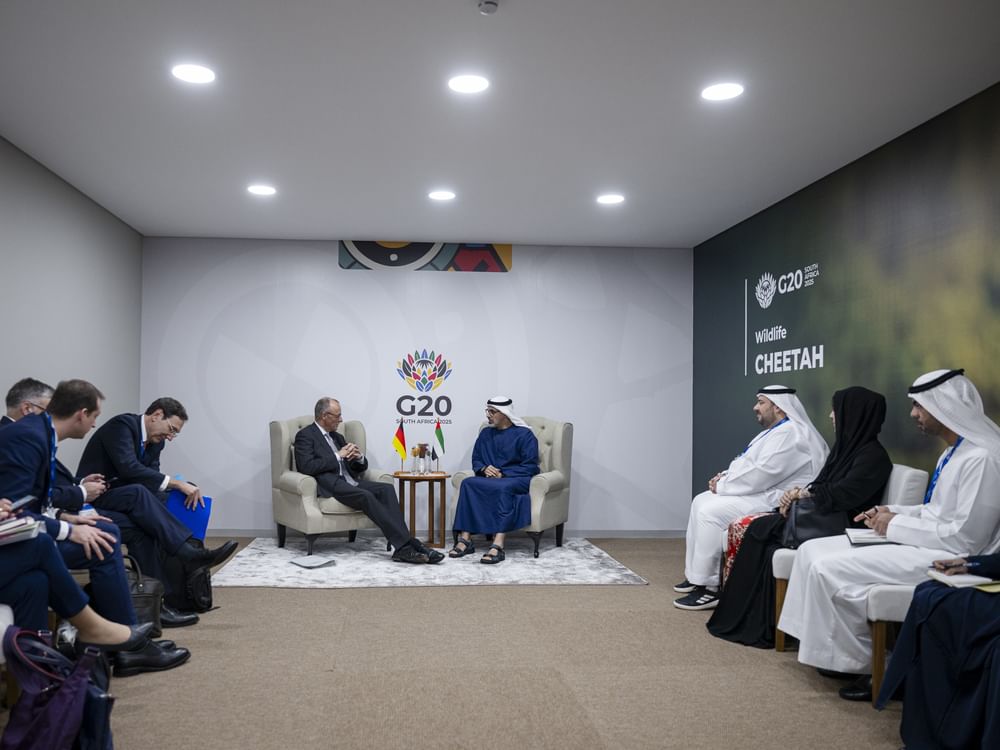 emirates7 - H.H. Sheikh Khaled bin Mohamed bin Zayed Al Nahyan, Crown Prince of Abu Dhabi, has met Friedrich Merz, Chancellor of the Federal Republic of Germany, at the G20 summit taking place in Johannesburg, South Africa.