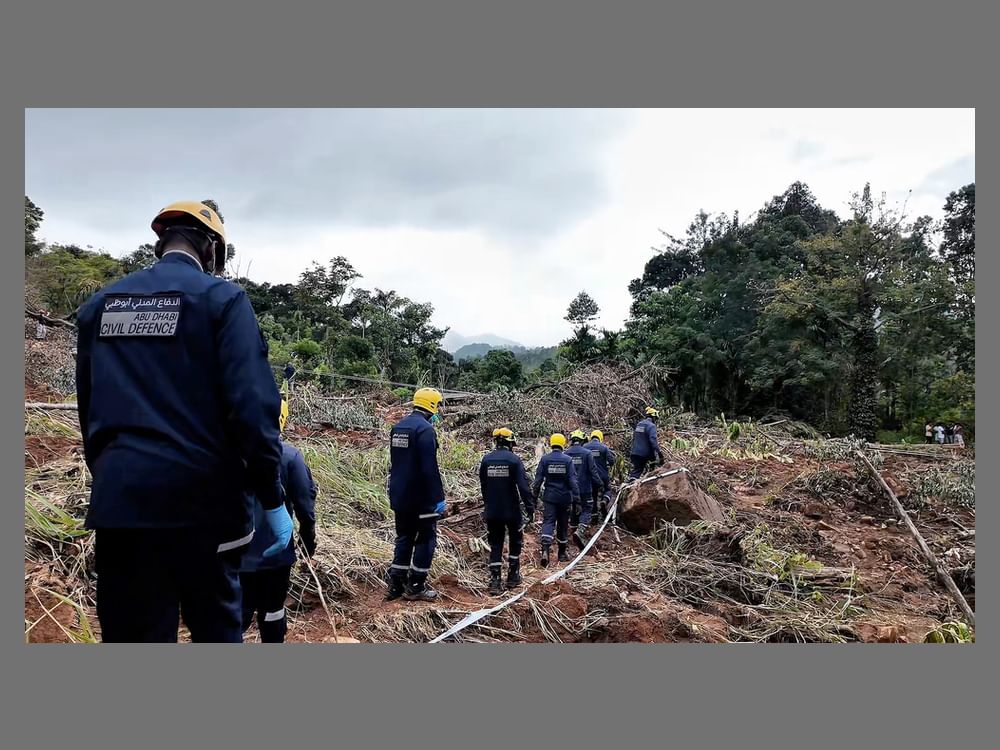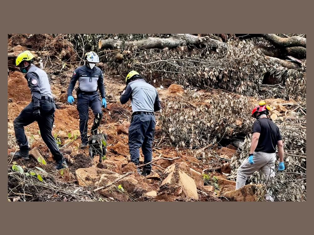 In the early hours of the morning, the team moved to the Rajathalava area, one of the regions most severely affected by landslides that buried several homes and residents under the debris. The team deployed its specialised vehicles and equipment, including search-and-rescue dogs and location-detection devices, and immediately began sweeping the area and removing rubble in difficult and complex terrain.