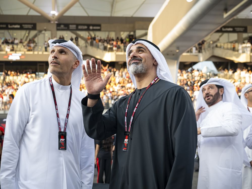 H.H. Sheikh Khaled attended the starting grid, where the final round of the Formula 1 World season commenced, following the UAE national anthem.