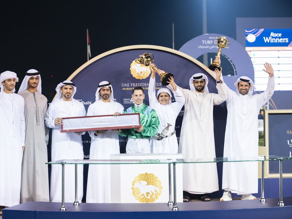Awarding the winner of the 7th race, known as the HH The President Cup for Arabian Purebred Horses (Group 1), the richest race of the evening with a prize purse of AED8 million, he highlighted that the UAE President Cup embodies the leadership’s commitment to preserving the nation’s equestrian heritage.