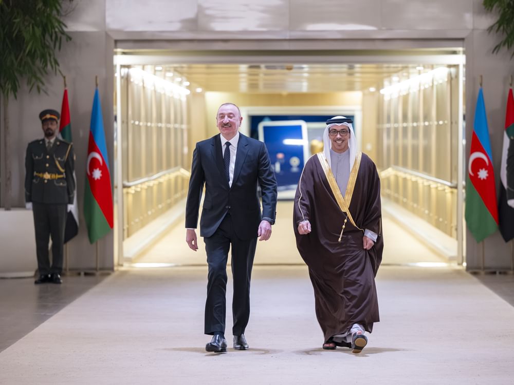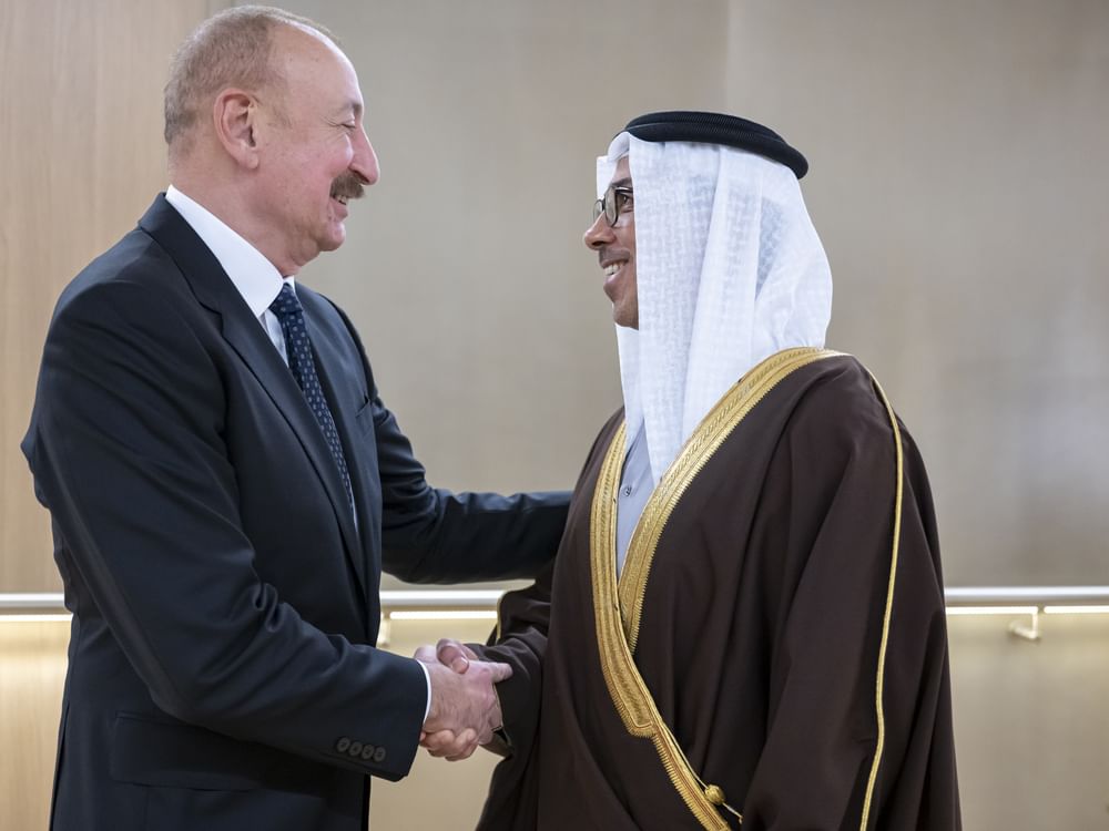 Earlier, His Excellency Aliyev was received at the Presidential Flight upon his arrival in Abu Dhabi by His Highness Sheikh Mansour bin Zayed Al Nahyan, Vice President, Deputy Prime Minister, and Chairman of the Presidential Court.