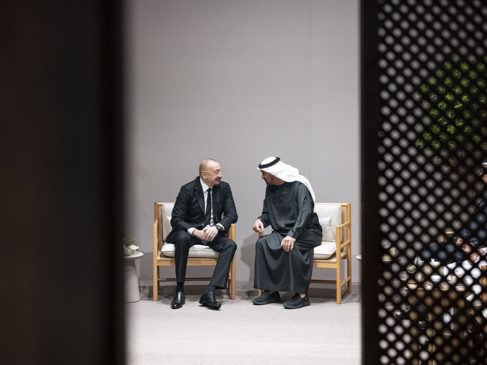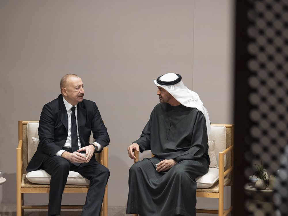 emirates7 - UAE President His Highness Sheikh Mohamed bin Zayed Al Nahyan and His Excellency Ilham Aliyev, President of the Republic of Azerbaijan, today discussed ways to strengthen bilateral relations in support of shared development as part of the Comprehensive Strategic Partnership between the two countries.