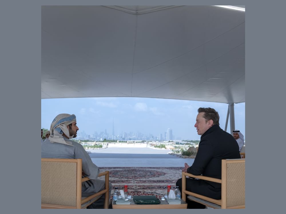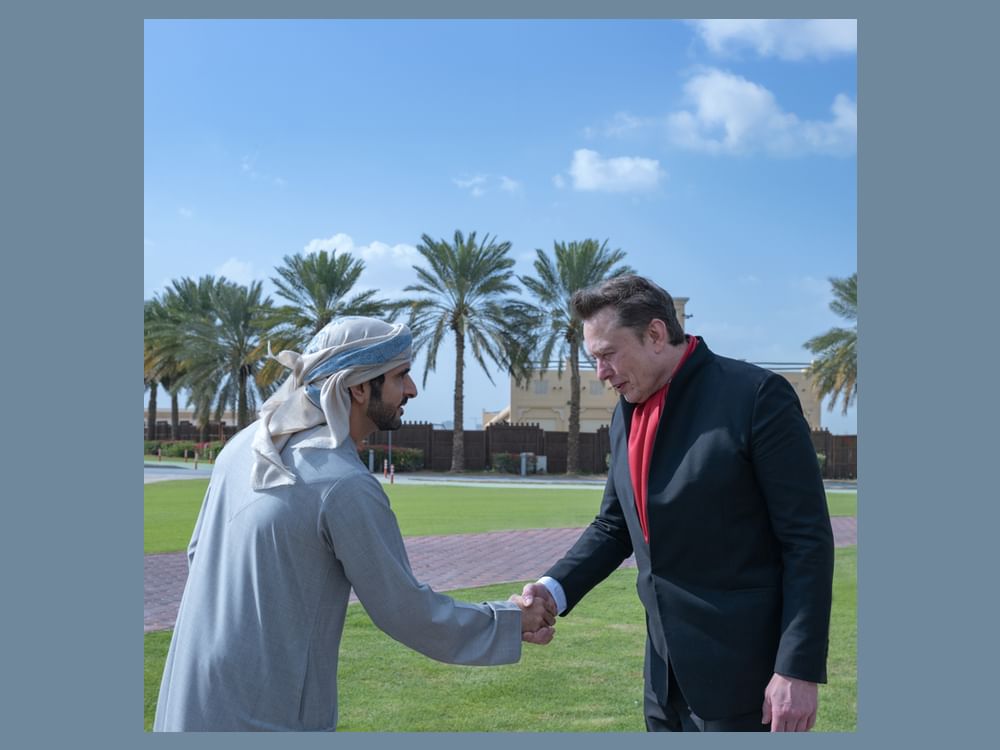 emirates7 - H.H. Sheikh Hamdan bin Mohammed bin Rashid Al Maktoum, Crown Prince of Dubai, Deputy Prime Minister and Minister of Defence of the UAE, and Chairman of The Executive Council of Dubai, met on Sunday with Elon Musk, CEO of X, SpaceX, Tesla, and Starlink, in the presence of H.H. Sheikh Maktoum bin Mohammed bin Rashid Al Maktoum, First Deputy Ruler of Dubai, Deputy Prime Minister and Minister of Finance of the UAE.
